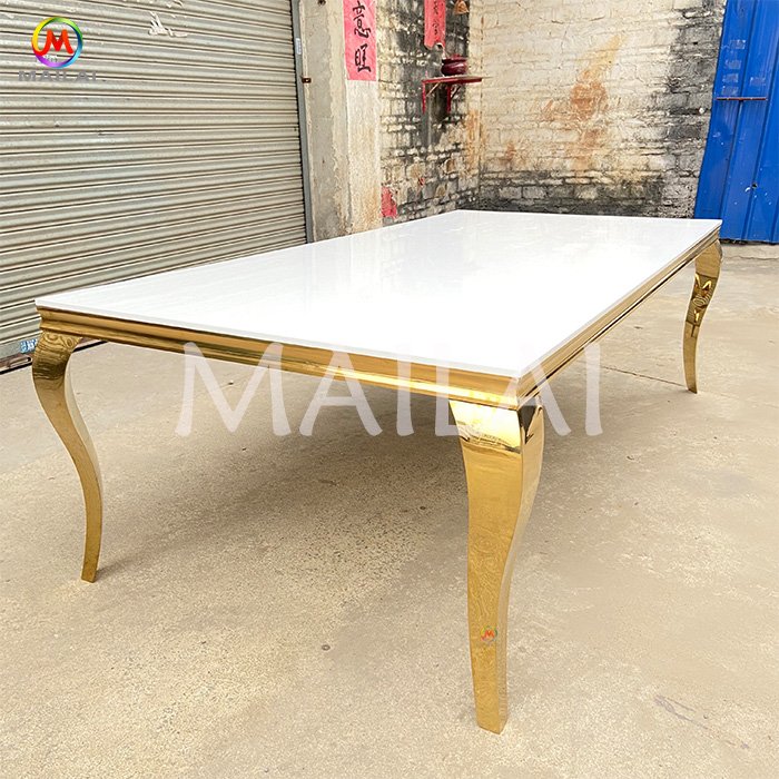 Hot selling hotel wedding banquet stainless steel glass banquet event gold dining table