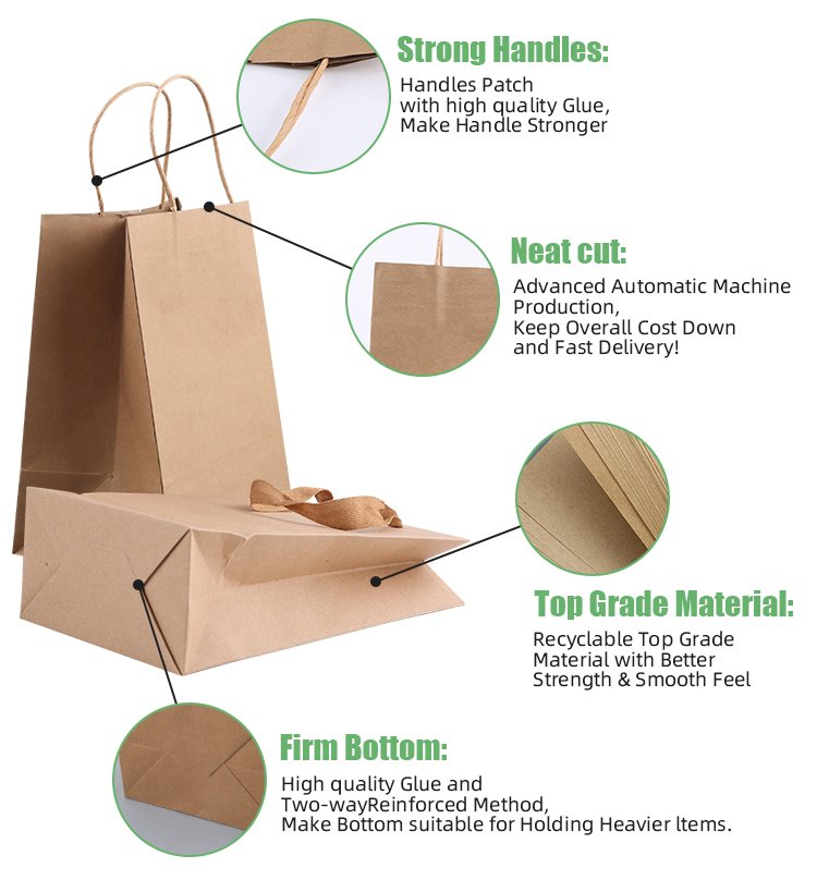 Customized printing white brown shopping recycling food bag with handle wholesale takeaway kraft paper bag with your own logo