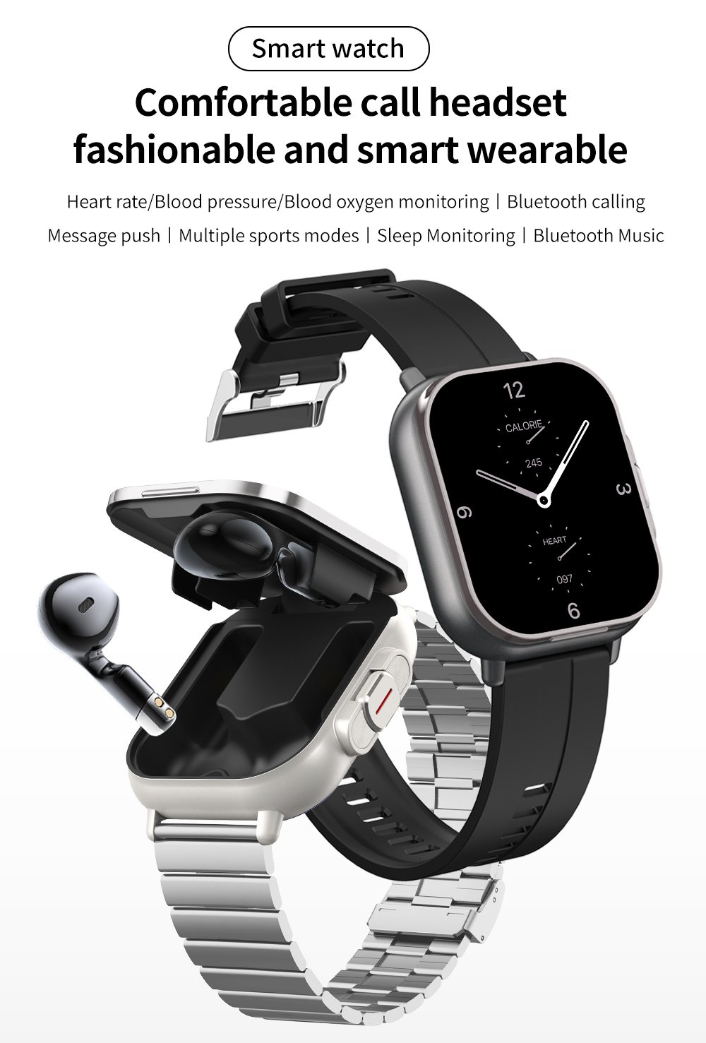 2-in-1 smartwatch with TWS earbuds and wireless earphones for health monitoring, fitness record reminders, and both men's and women's smartwatches