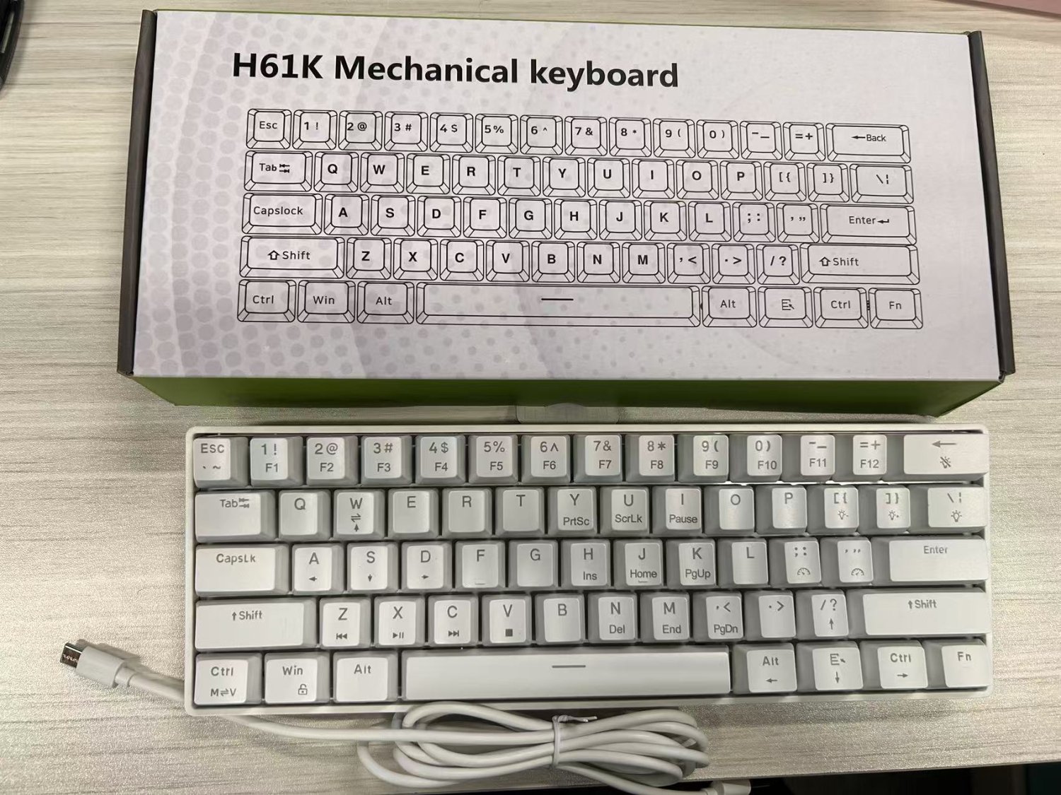 Factory inventory 61 key mechanical keyboard wired C-type mini gaming keyboard blue switch LED backlit gaming mechanical keyboard