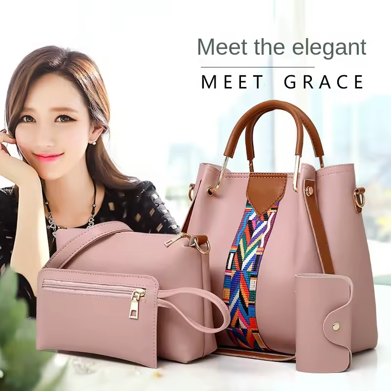 Fashionable women's handmade designer bag, low-priced women's handbag, women's handbag set, PU handbag 4-piece set