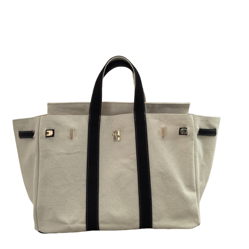 Low minimum order quantity customized popular women's handbag organic cotton canvas large capacity boat leather bag with gold buckle