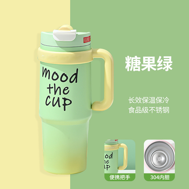 Large capacity 900ml giant thermos cup with straw classic design vacuum office car travel and back to school