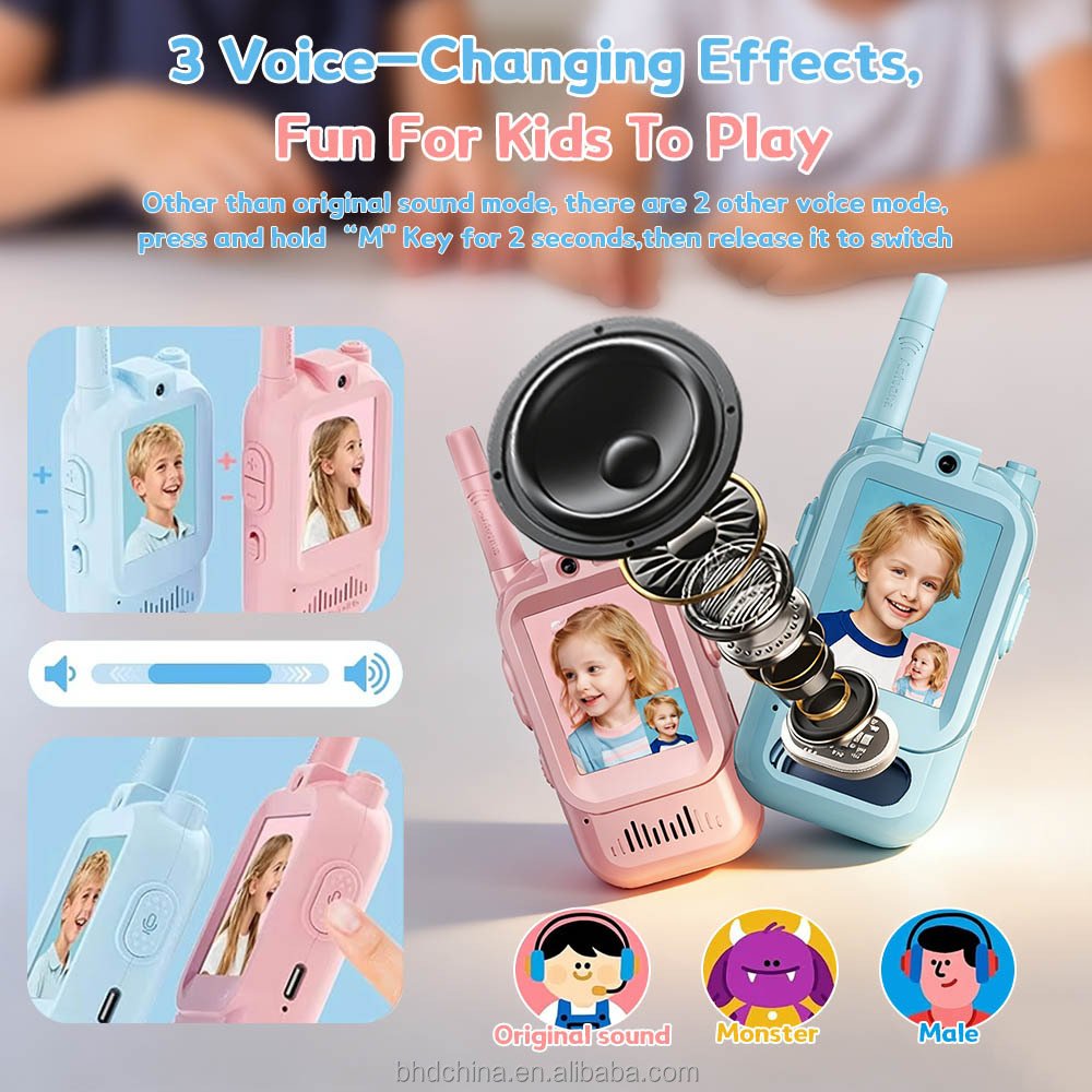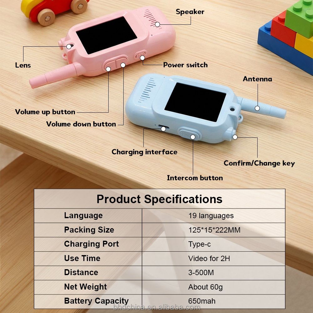 2-inch IPS display video walkie-talkie for kids, creative video walkie-talkie with 2-way talk, suitable for Christmas, birthdays, and outdoor use.