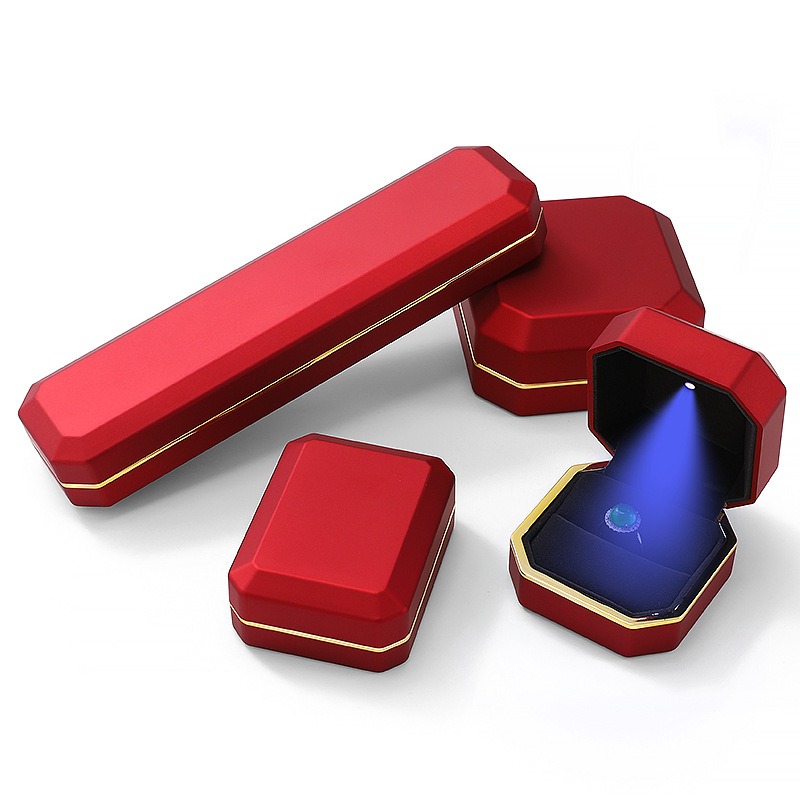 2026 High quality luxury gold OEM ODM customized brand logo LED jewelry box light, can accommodate rings