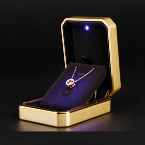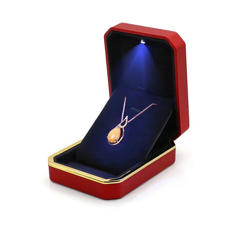 2026 Fashion Luxury Black OEM ODM Customized Brand Logo Square hinge Closed LED01B Valentine's Day Jewelry Box Necklace Box