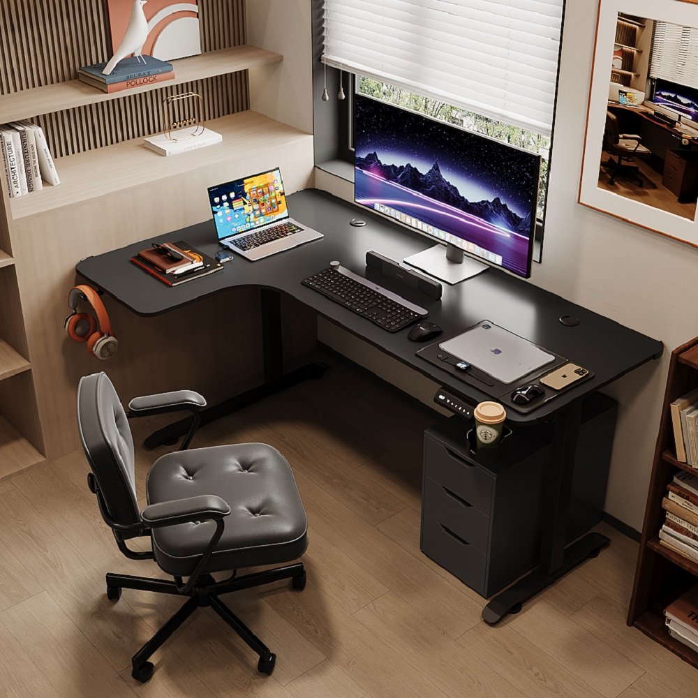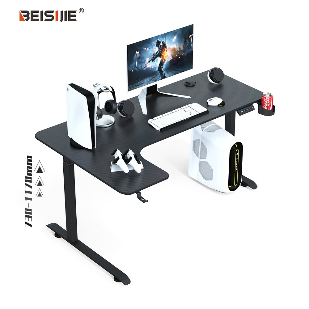BEISIJIE AL white adjustable gaming table, L-shaped table, 63 inch height adjustable standing corner table with large store