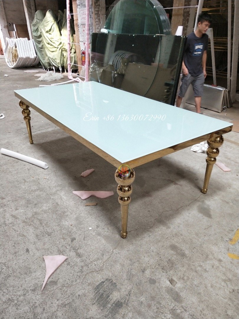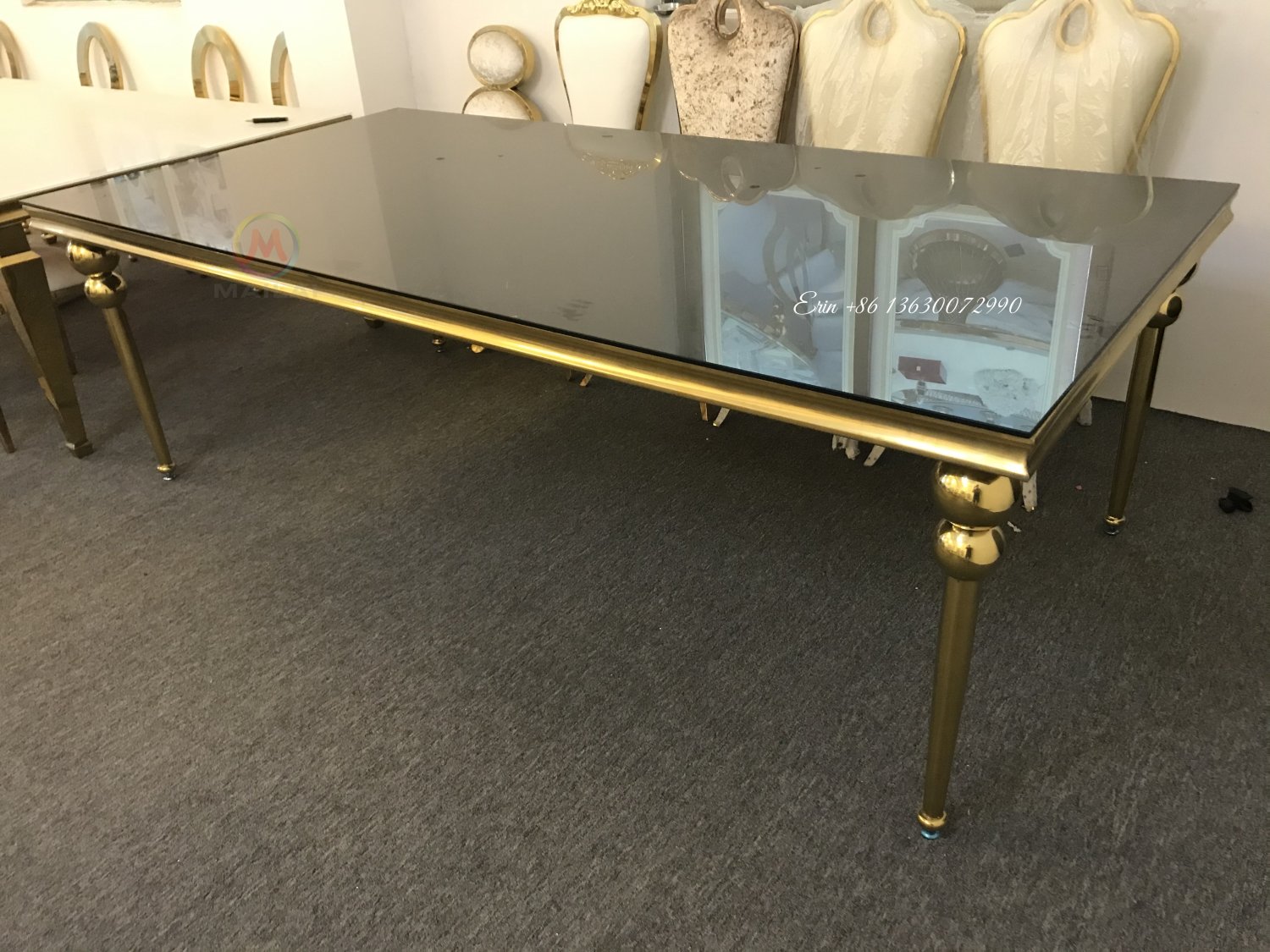 Hotel banquet event white metal gold dining table stainless steel wedding table