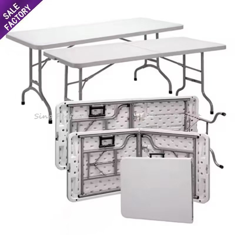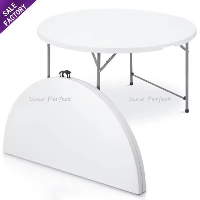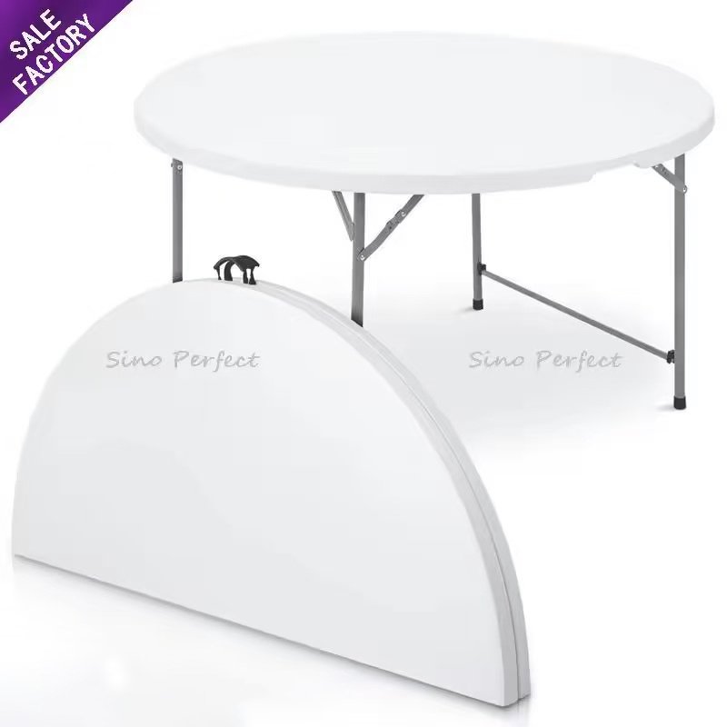 Factory direct sales wedding banquet hotel furniture, space saving folding white plastic circular 6-foot banquet table