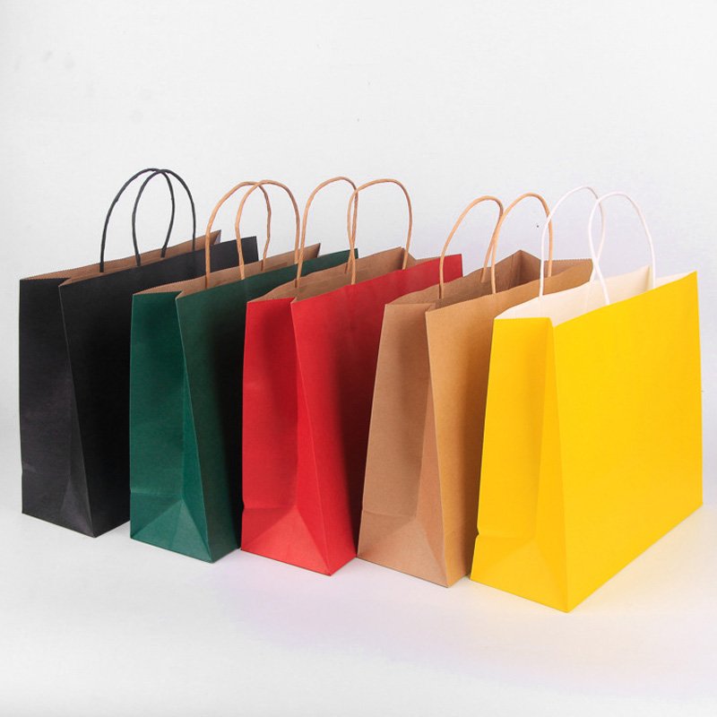 Customized printing white brown shopping recycling food bag with handle wholesale takeaway kraft paper bag with your own logo