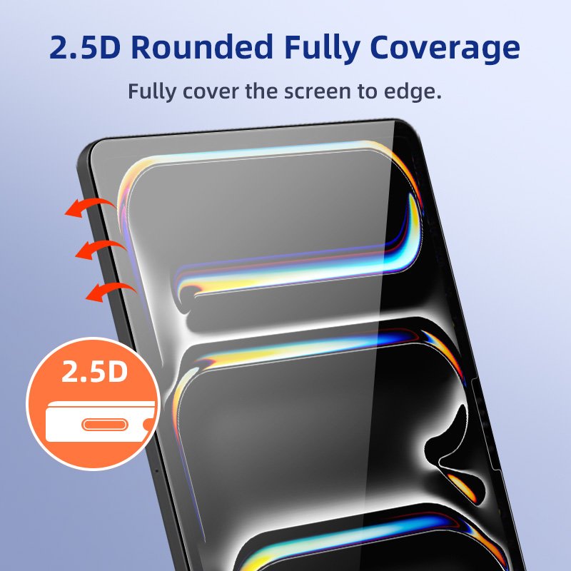 Easy to install tempered glass screen protector, compatible with protective case, suitable for iPad Pro/Air 11/13 inch 2024 M2/M3/M4/M5 chips