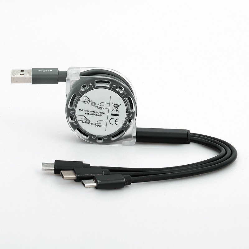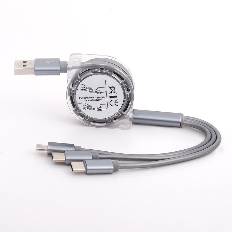3-in-1 USB cable suitable for iPhone charger, 3A fast charging type - C 3-in-1 extendable USB cable suitable for Android phones