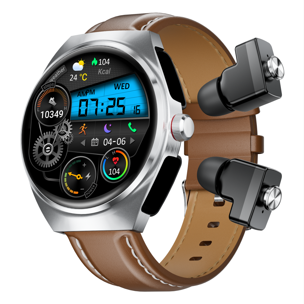 2025 Best New Smart Watch Leather Strap, 2-in-1 Earbuds and Fitness Tracker with Heart Rate Monitor