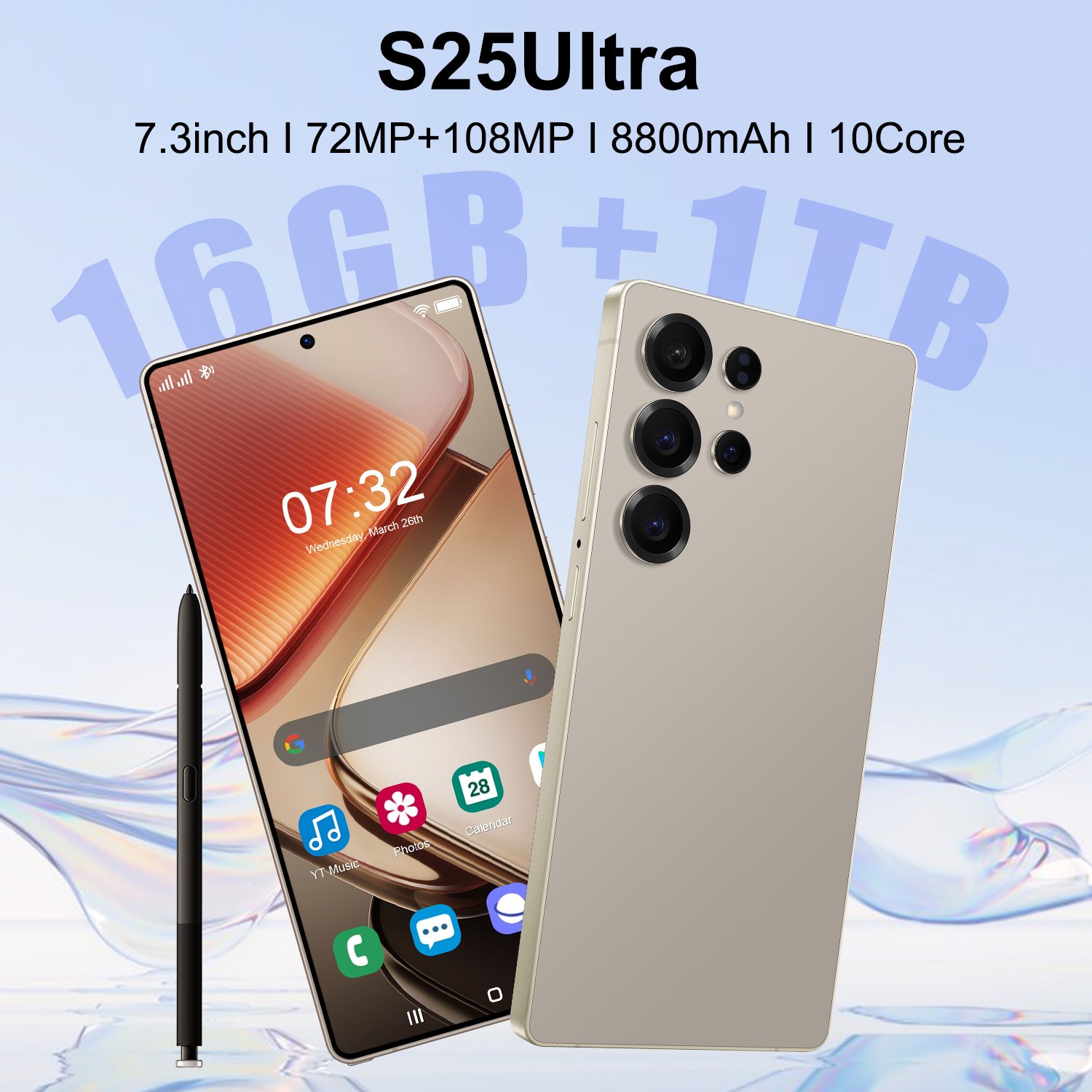 GalaxS S25 Ultra 7.3 HD 5G Smartphone Original Android Phone 16GB+1TB Dual SIM 8000mAh 72MP+108MP Ten Core Code Division Multiple Access Technology