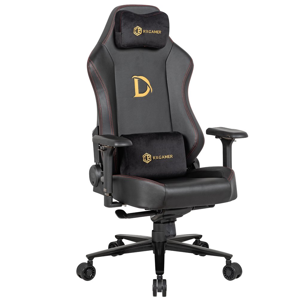 Customized black synthetic leather racing style esports chair with 4D armrests and magnetic headrests that can be extended, massaged, and rotated
