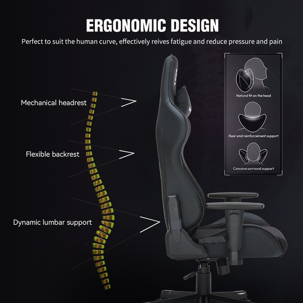 Ruibao modern 3D adjustable armrest, customized backrest support, synthetic leather swivel chair headrest, 4-stage air pressure lifting and tilting function
