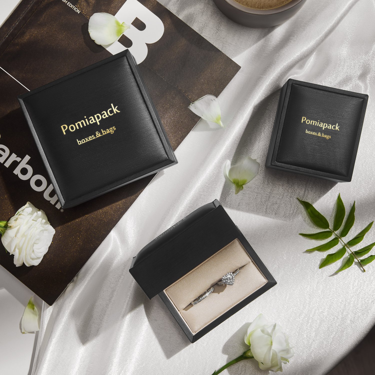 Customized Personalized Logo Black Jewelry Packaging Gift Box Ring Bracelet Earnail Necklace PU Leather Wedding Jewelry Box