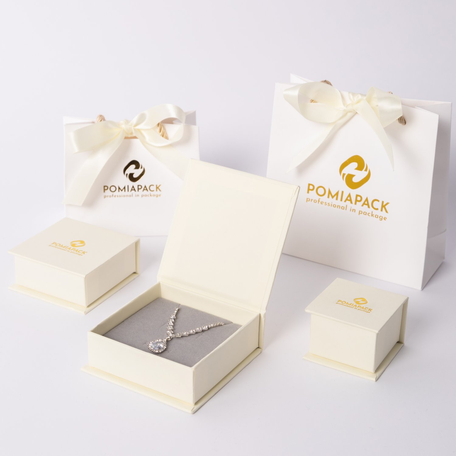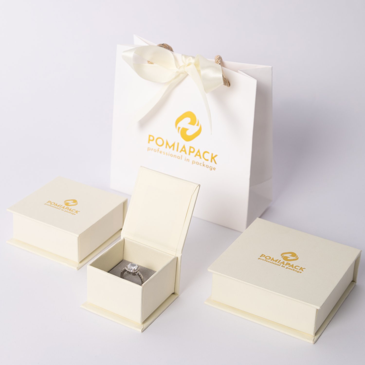 Customized logo cream gift jewelry box, customized paper cardboard magnetic earring jewelry box, jewelry packaging