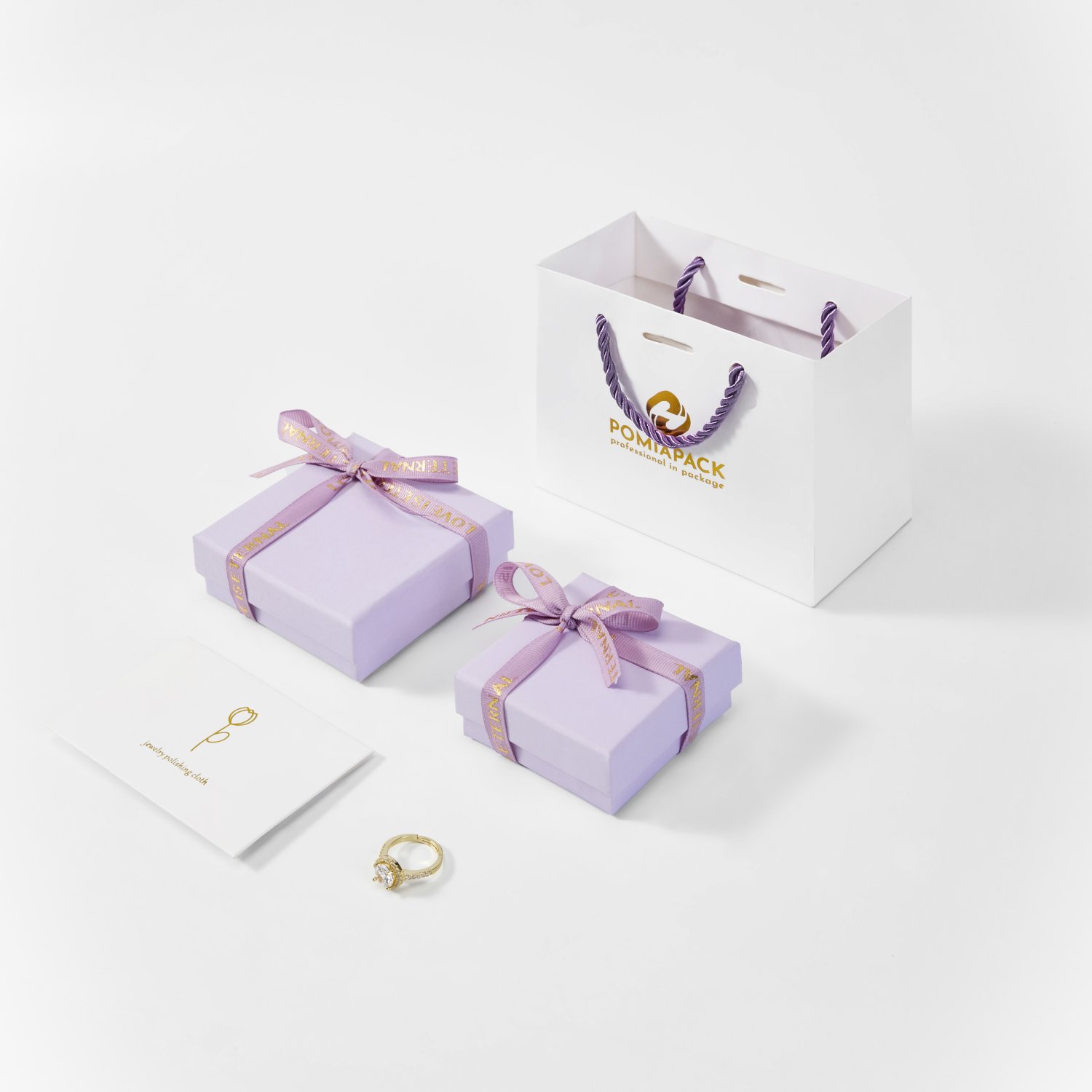 Purple Lialac paper jewelry box with bag, necklace, custom logo jewelry box, card jewelry container