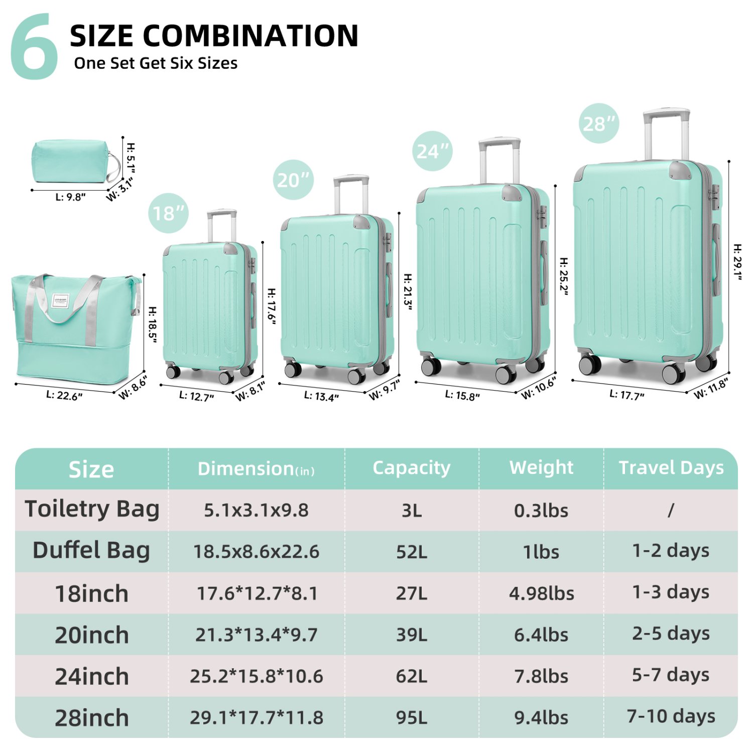 Hot selling luggage set in the United States, 6-piece set with luggage bag, high-quality factory product, suitable for personal travel use by students