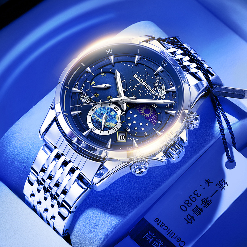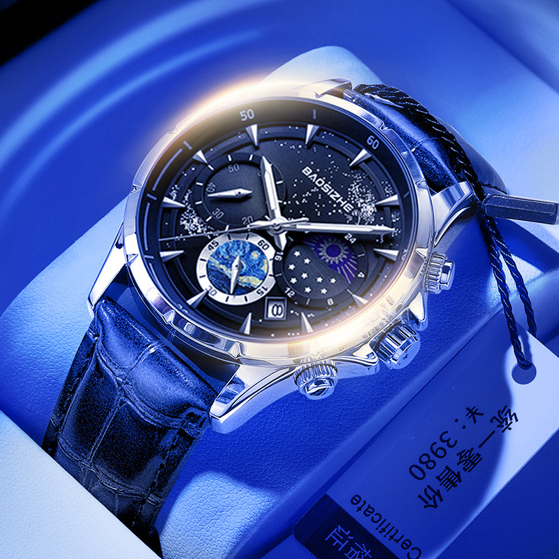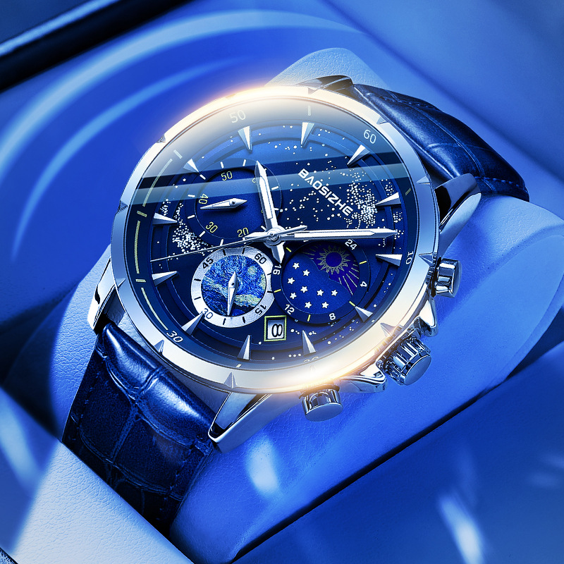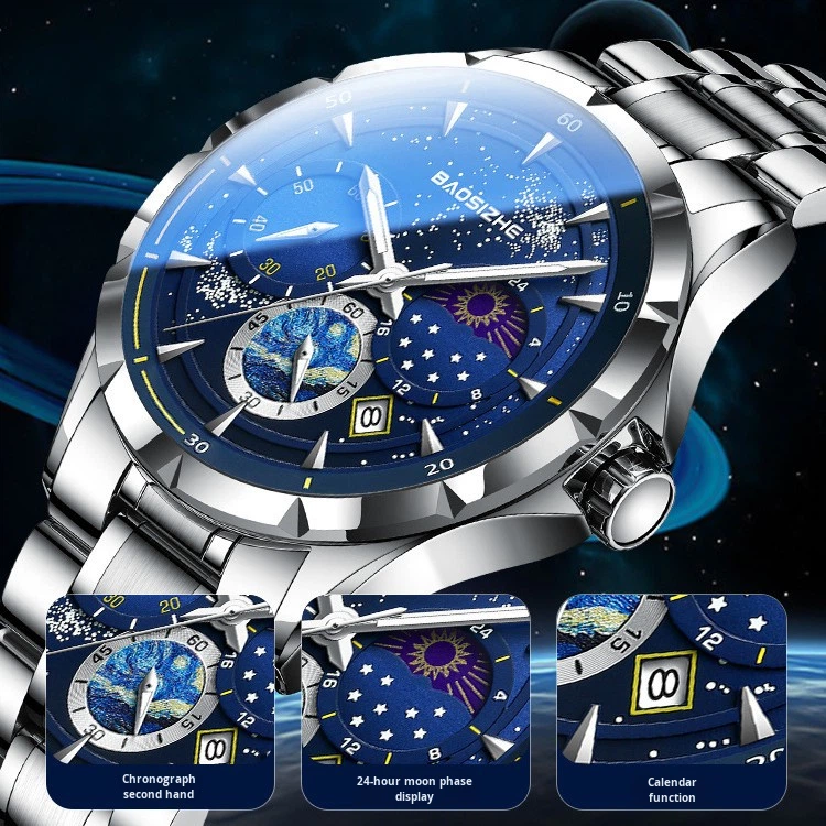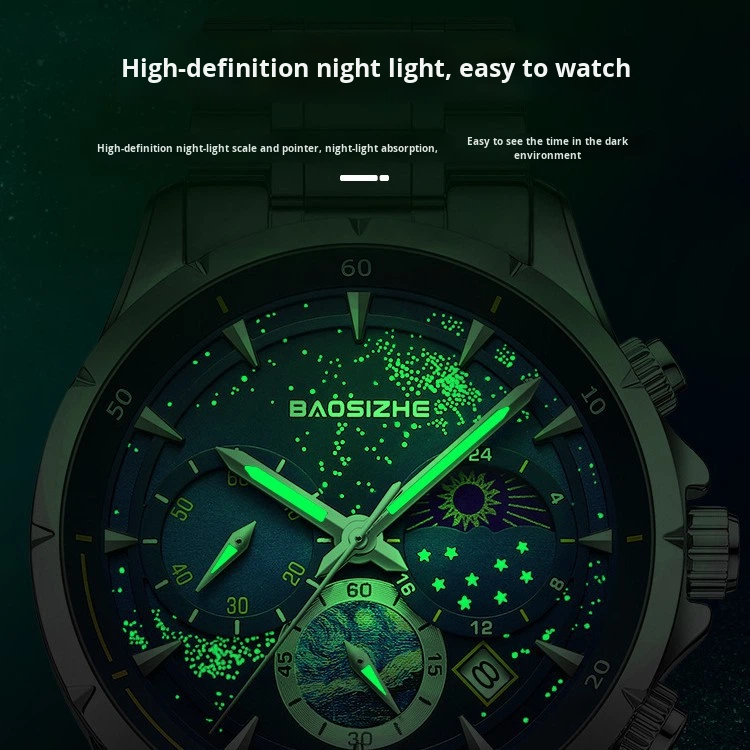 Fashionable Night Light Starry Sky Design Men's Watch 30m Waterproof Luxury Men's Quartz Watch