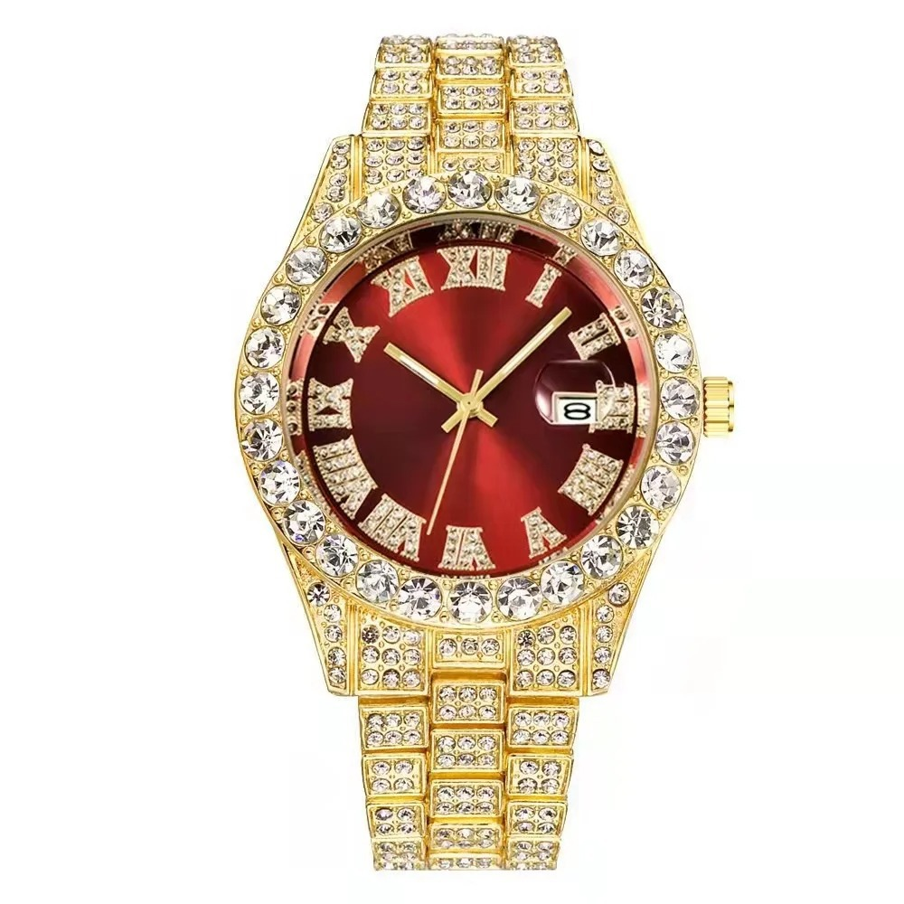 Wholesale fashion retro diamond studded alloy watches for men's luxury quartz watches 2026