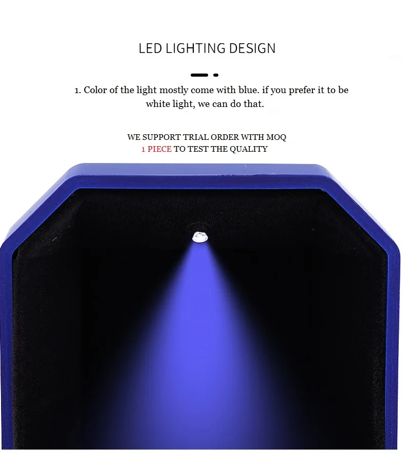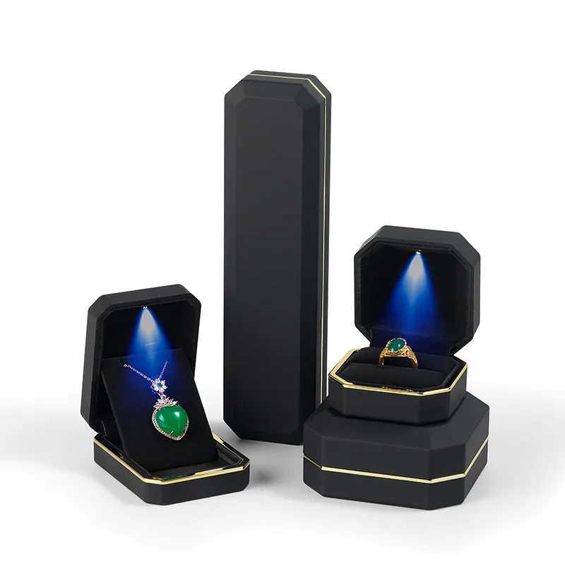 2026 Fashion Luxury Black OEM ODM Customized Brand Logo Square hinge Closed LED01B Valentine's Day Jewelry Box Necklace Box