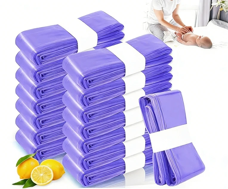 Lihuida anti odor recyclable diaper bucket refill bag | Blue/Orange/Green/Purple | Flexiloop handle continuous PE film